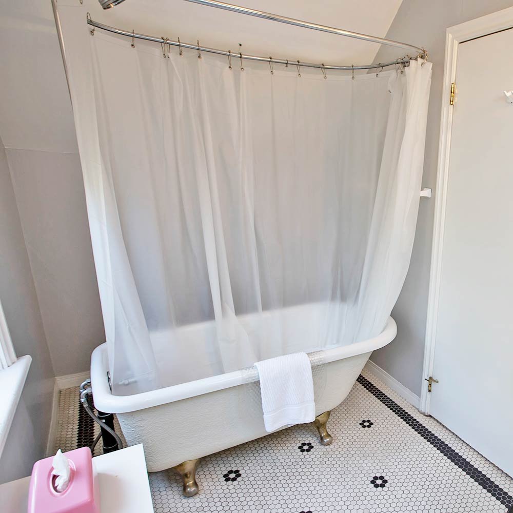 The Peak of Barclay House with a snowcapped theme, this spacious room encompasses the entire top floor. Queen size bed with an additional twin daybed, skylights, and wet bar. The bright bathroom features a clawfoot bathtub with a shower.